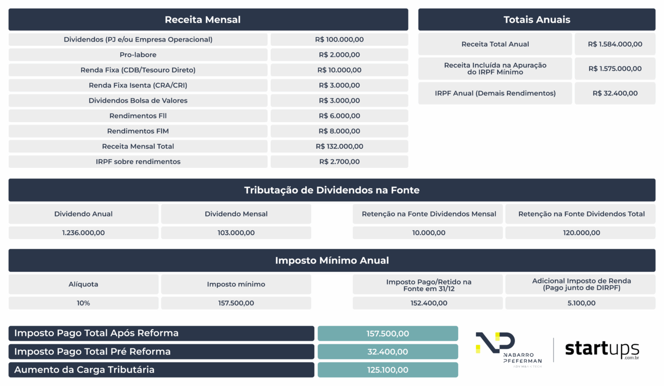 Abaixo temos uma simulação simplificada de um caso hipotético de um Sócio que teve os seguintes rendimentos: