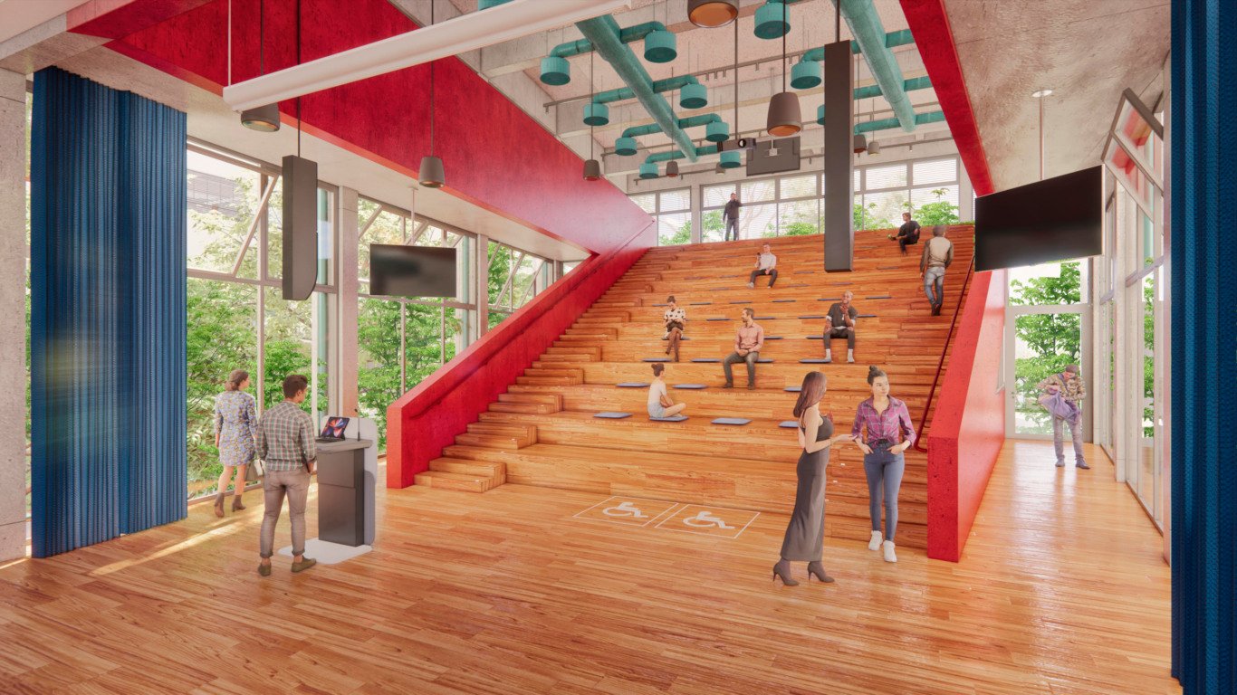 Além disso, todas as intervenções seguem diretrizes de sustentabilidade e buscam minimizar impactos ambientais. O projeto inclui uso de ventilação natural por meio de sensores e janelas automatizadas, além de instalação de placas fotovoltaicas para geração de energia limpa e sistemas de captação de águas pluviais e de controle de enchentes no edifício.